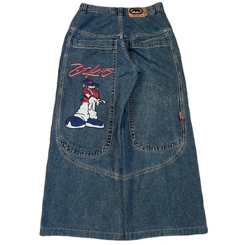 Wij Designer Merk Heren Zwaargewicht Hiphop Jeans Broek Y 2K Stijl Wijde Pijpen Kristallen Knopen Versieringen Gewassen Technics Odm Aanbod